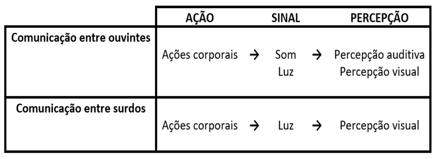 Quadro 1. Diferenças na modalidade da comunicação entre ouvintes e surdos