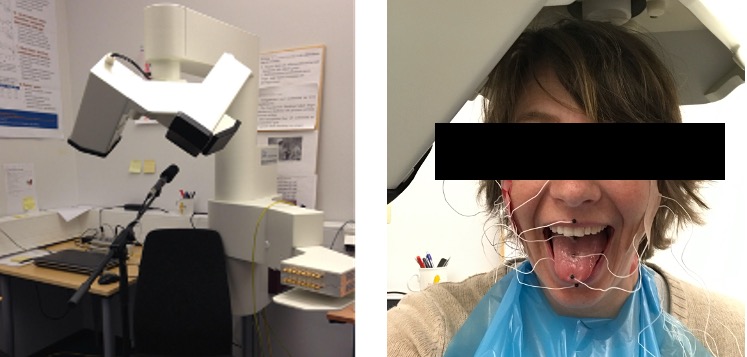 The forces that activate muscles of the different orofacial organs can be observed by closely monitoring movements in the oral cavity during speech. One way of doing this is by analyzing speech dynamics, e.g., when in time force is applied to movements. This can be recorded using an electromagnetic articulograph (EMA), in which an electromagnetic field picks up sensor movements in space and time (Fig 1). With EMA we can get position and speed of many articulators as they move from speech posture to speech posture, and we can estimate the activation of movements, that is, when force is added to articulatory movements by muscle activity.